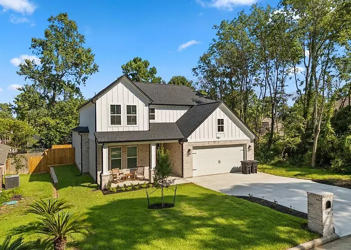 Offering a suite of services, the New Listing Modern Lake Conroe Oasis ensures that your comforts are prioritized. The attentive staff is dedicated to catering to your needs, from concierge assistance to in-room dining options. Guests can also enjoy recreational amenities, including a pristine swimming pool and direct access to the sparkling waters of Lake Conroe.